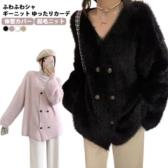 シャギーカーディガン Vネック 秋 トップス シャギーニット カーディガン 秋冬 冬 ふわふわ ニットトップス ニットカーディガン コーディガン 羽織り 起毛ニット 前開き ボタン シャギーニット ドロップショルダー カーディガン もこもこ ゆったり