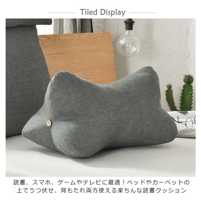 | 読書、スマホ、ゲームやテレビに最適!ベッドやカーペットの上でうつ伏せ、背もたれ両方使える楽ちんな読書クッション 脚がダルいときにはフットレスト替わりに! ごろ寝クッションのカバーは毛足の短いタイプの生地だから、春夏秋冬、季節を気にせず使えます。 柔らかいもたれ心地とほどよい傾斜で、ゆったりとしたくつろぎ時間を過ごせるテレビ枕です。 クッションのカバーは取り外し可能で洗濯できます。常に清潔に保てて気持ちいい。 | |