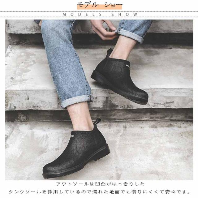 | 一体成型技術を施して、防水なので、雨・雪の日はもちろん、晴れの日に履いていても違和感がないレインシューズです。 アウトソールは凹凸がはっきりしたタンクソールを採用しているので濡れた地面でも滑りにくくて安心です。 人気のデザインなので、いろんなコーディネートに対応できて、外出、通学、通勤、釣り、旅行などの様々なアウトドア活動に役に立つメンズレインブーツです。 | |