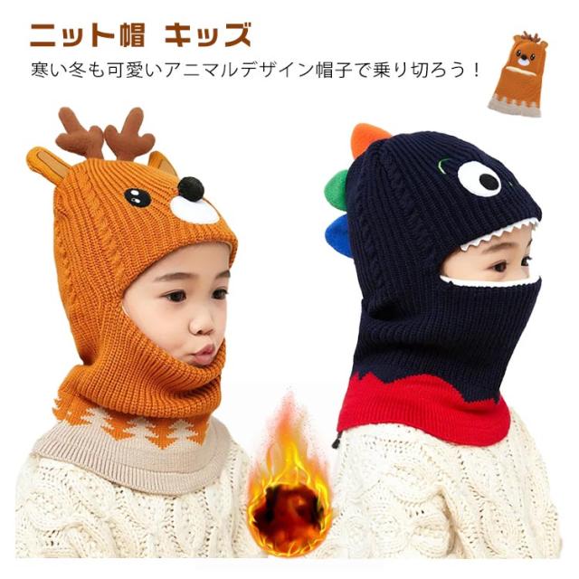 アニマルフード クマ 一体型 子供用 ニット帽 秋 耳付き 恐竜 ネックウォーマー トナカイ キッズ ニット帽 ポンポン ニットキャップ スヌード バラクラバ キッズ ベビー かわいい バラクラバ 冬 子ども 男の子 女の子 クリスマス