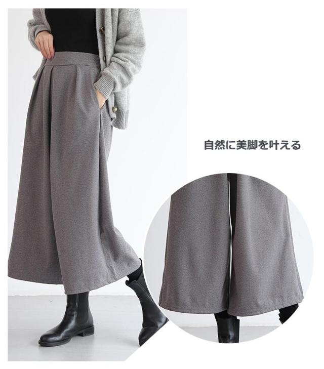 ウール混 チェック柄 ガウチョパンツ 秋 ウールブレンド 春秋 フレアパンツ ボトムス ワイドパンツ きれいめ ガウチョパンツ タック入り レディース ズボン ポケット 付き ウエストゴム 九分丈 ゆったり カジュアル 冬 黒 ブラック グレー