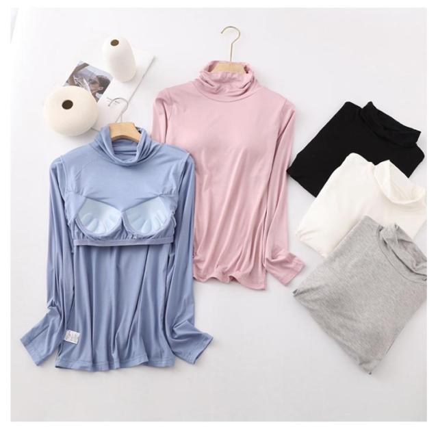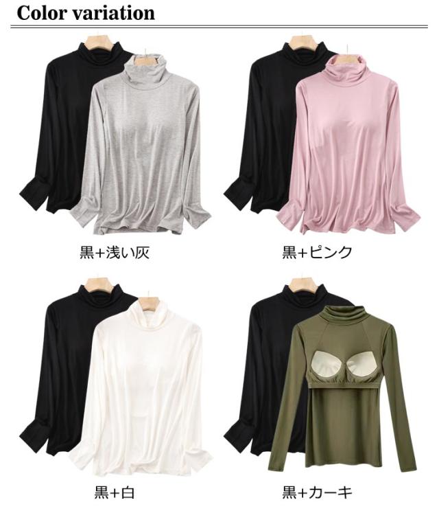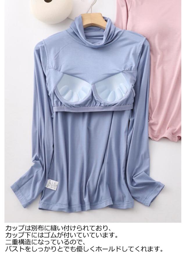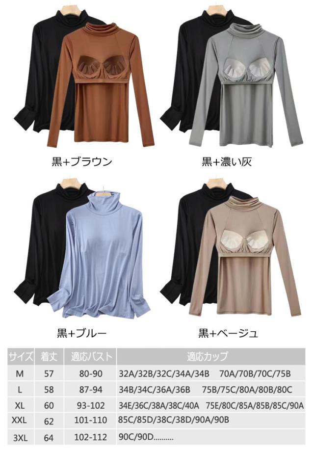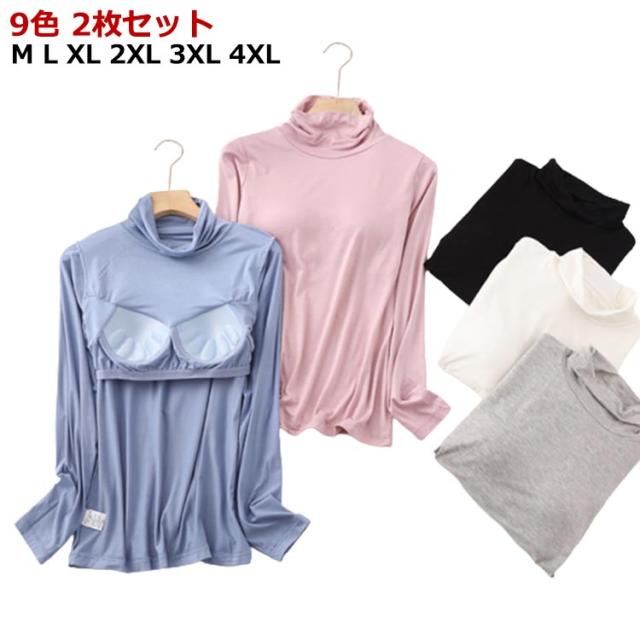 ブラトップ レディース 長袖 下着 インナー カップ付き 2枚組 重ね着 長袖 暖かい モーダル 綿 クルーネック 肌着 あったかインナー カップ付きインナー 吸湿 カップ付きインナー 冬 保温 あったか インナー 防寒 シンプル 大きいサイズ
