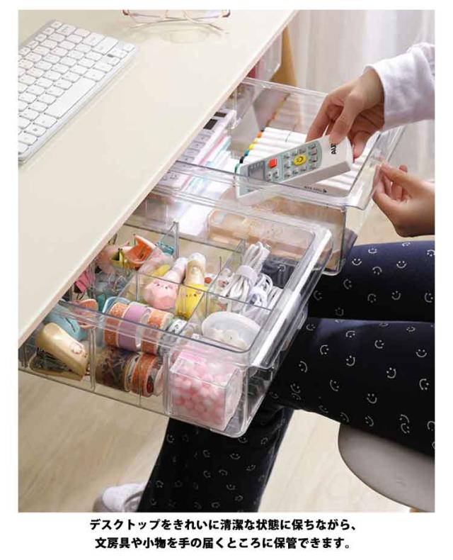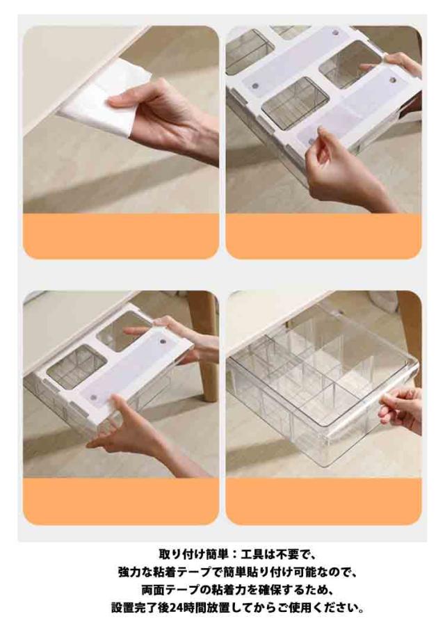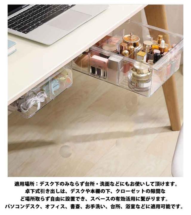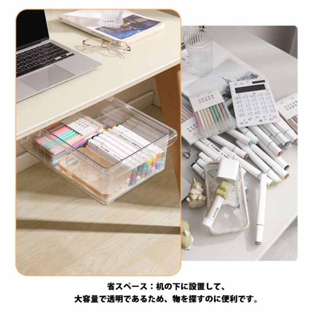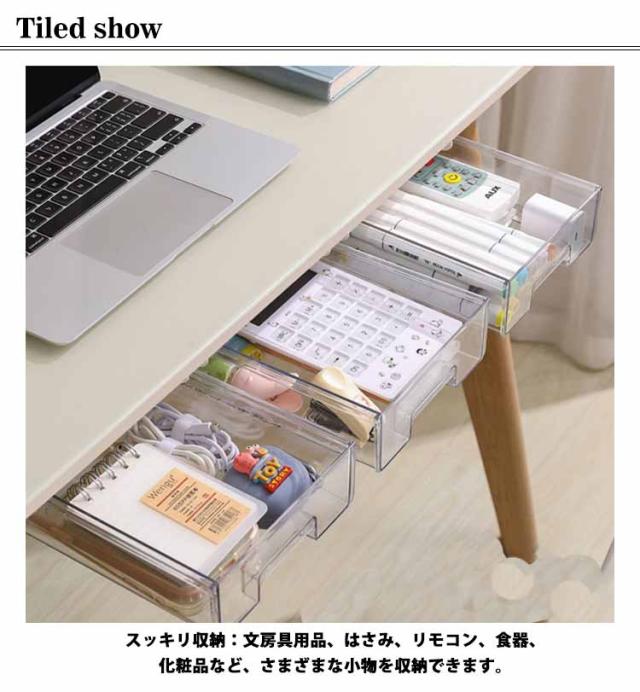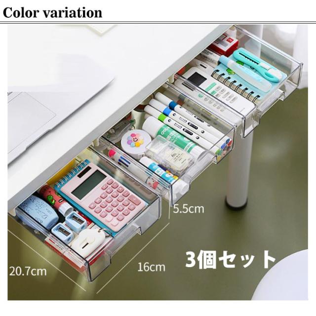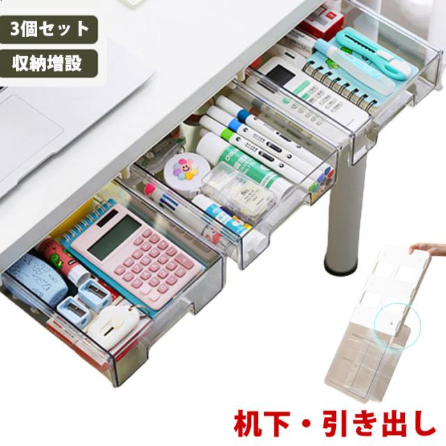 穴あけ不要 【3個セット】机下 収納ボックス デスク下 引き出し式 透明 後付け 引き出し 収納ケース デスク下 机 収納トレー 【3個セット】机下 DIY 整理 簡単取り付け 収納 トレー スライド収納 小物収納 大容量 オフィス収納 机の下 増設 勉強机