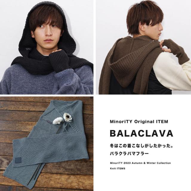 「プラス1で楽しむ冬のニットアイテム」バラクラバフードマフラー