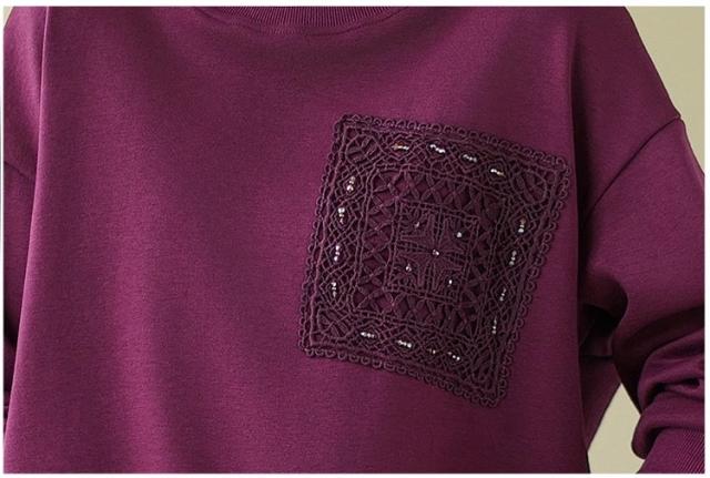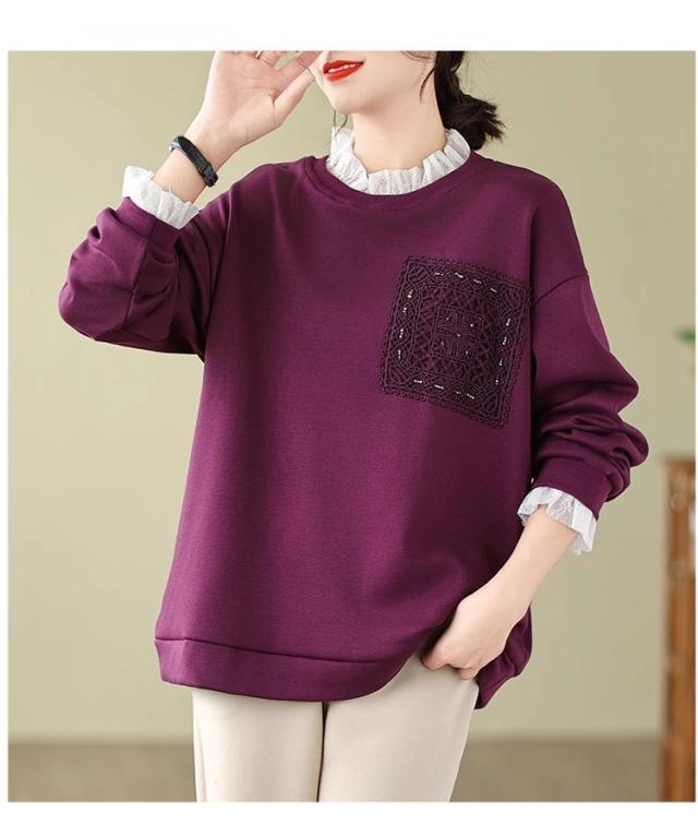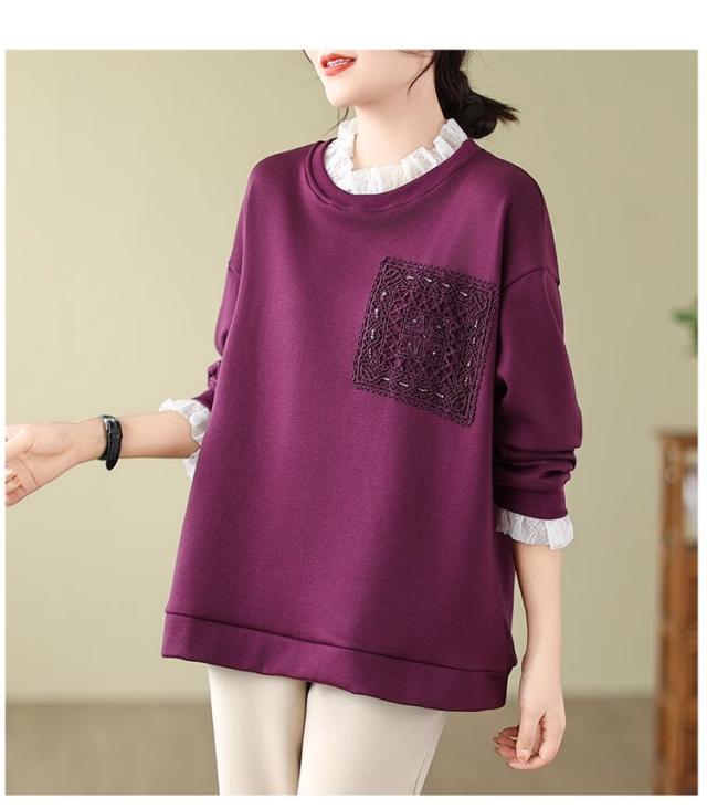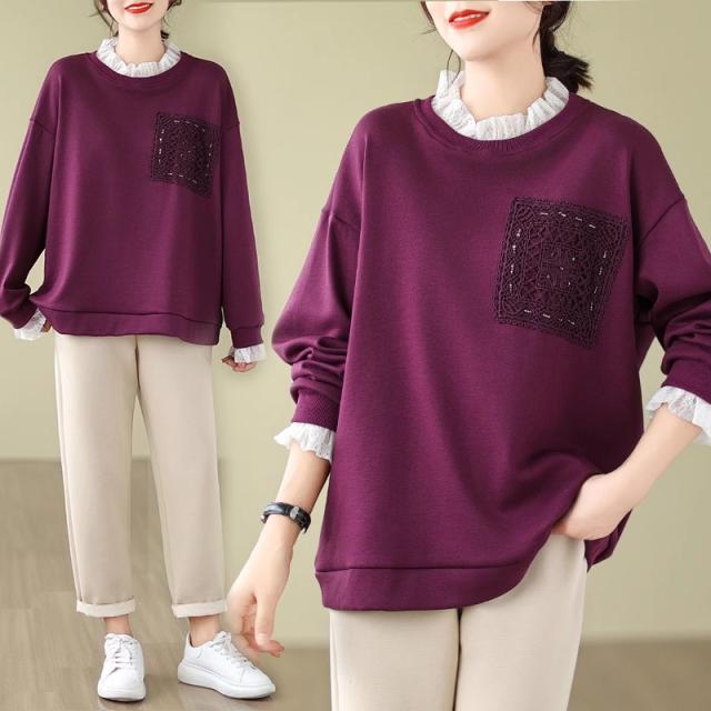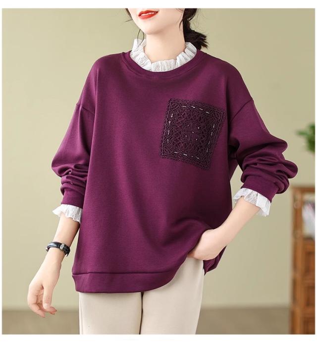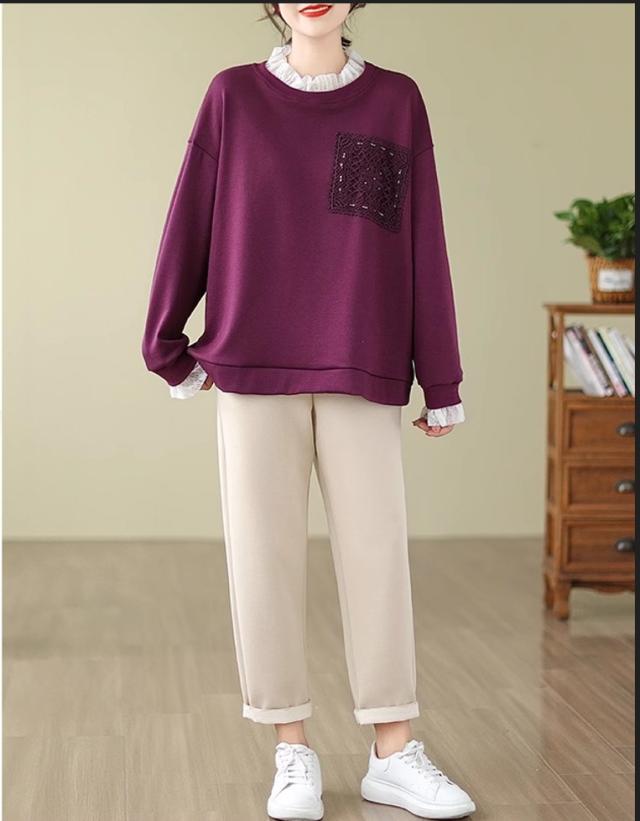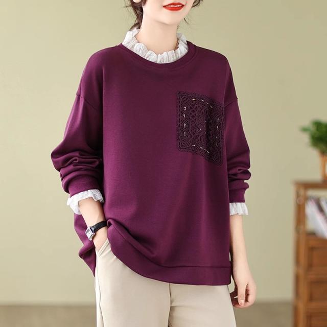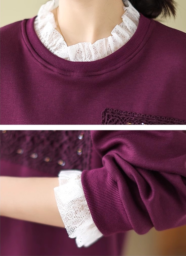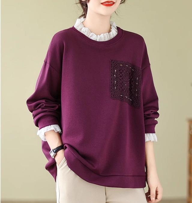 プルオーバー レディース 秋冬トップス カットソー 長袖 クルーネック あたたかな裏起毛 柔らかくソフトな風合い 襟口袖口 白いレース ハイネック 大人気