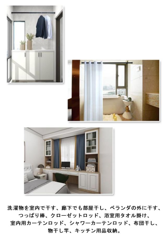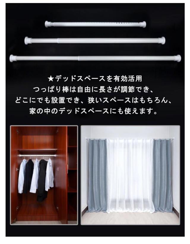 突っ張り棒 強力 つっぱり棒 伸縮棒 強負荷 穴あけ不要 物干し竿 ドリル不要 布団干し 室内物干し 間仕切りカーテン カーテンレール 衣類 コート掛け 服 整理 クローゼット収納 伸縮自在 スリム 隙間収納 押し入れ 支え棒