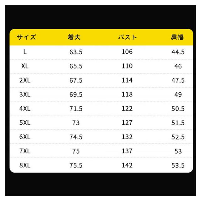 | サイズ | L XL 2XL 3XL 4XL 5XL 6XL 7XL 8XL |