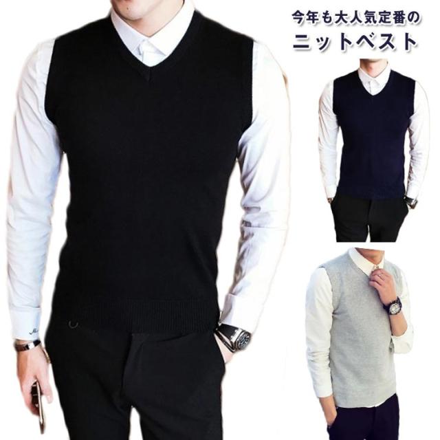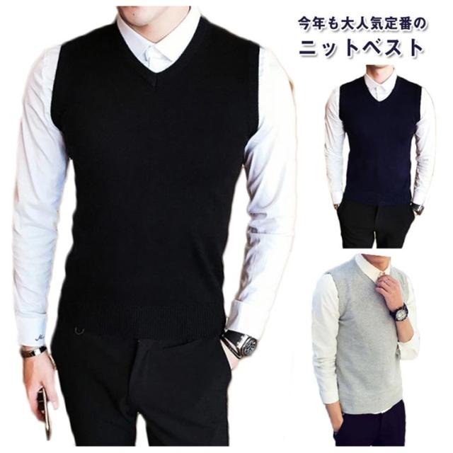 ニットベスト メンズ vネック ベスト 学校用 ビジネス 秋 セーター シンプル 春 ノースリーブ スリーブレス 前ボタンなし 仕事着 仕事用 スーツ スーツベスト 通勤 洗える 無地 大きいサイズ 男性 紳士服 ニットベスト カジュアル M〜3XL