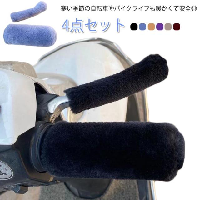 自転車 ハンドルカバー バイク もこもこ 暖か ハンドグリップ カバー ハンドル カバー ストレッチ 送料無料 スクーター 4点セット 防寒 滑り止め 保温
