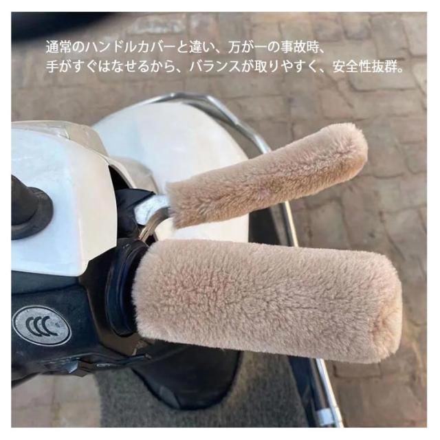| 寒い季節の自転車やバイクライフも暖かくて安全◎ もこもこのボア素材で、ヒヤッとしない暖か。 ストレッチ性バツグンの素材で電動自転車やバイク、スクーターなどハンドルに対応します。 滑り止め効果もあり、ハンドルに固定して、のずっとさわっていたくなる。 通常のハンドルカバーと違い、万が一の事故時、手がすぐはなせるから、バランスが取りやすく、安全性抜群。 洗濯機で丸洗いできるから、いつも清潔にお使い頂けます。 | |