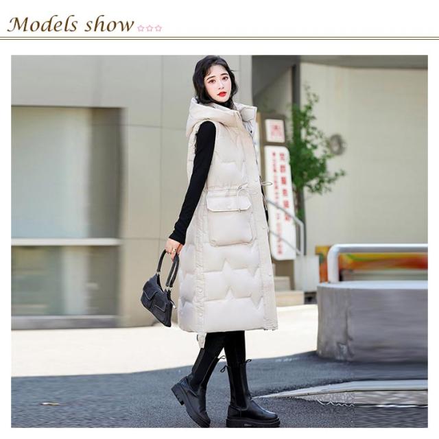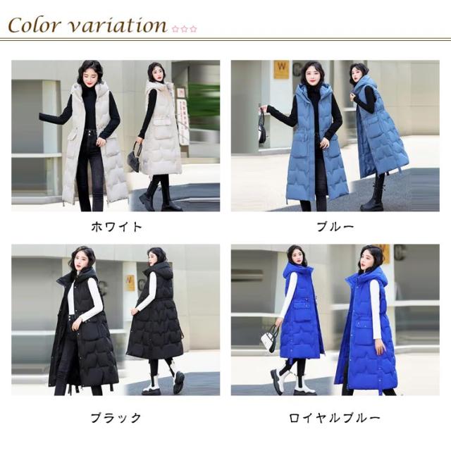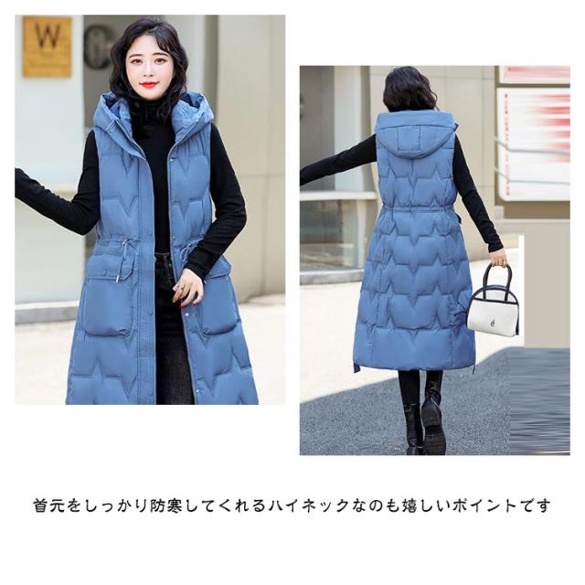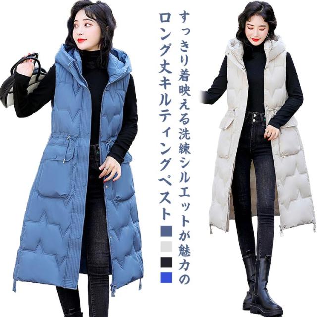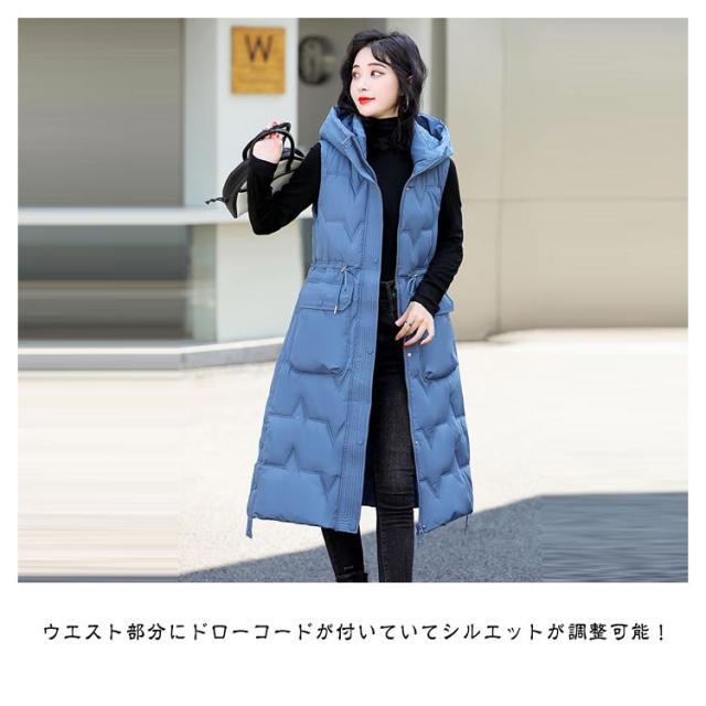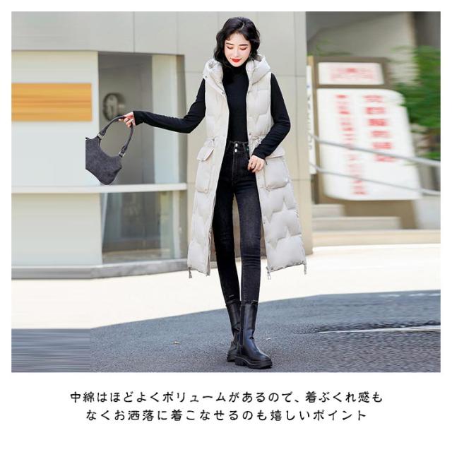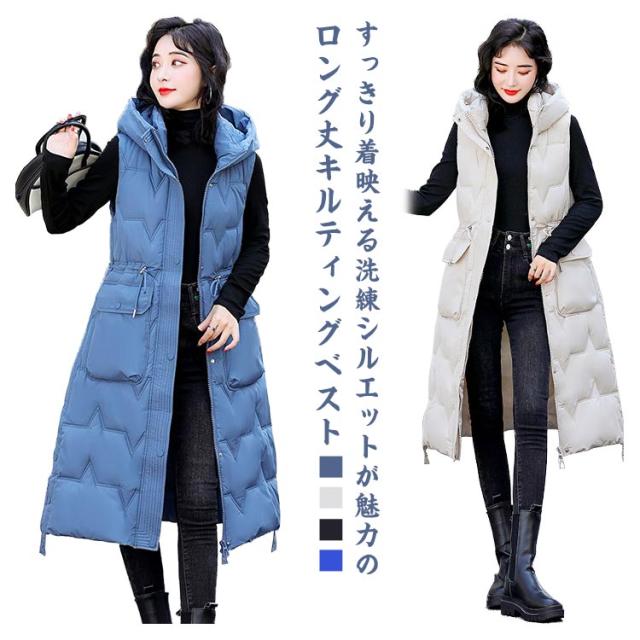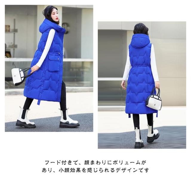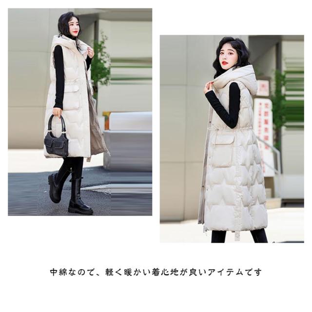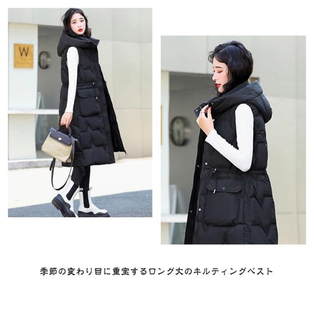 厚手 中綿コート キルティング ロング コート ベスト 秋冬 中綿 50代 アウター 防寒 軽量 防風 レディース 中綿ベスト あたっか スリム 細身 ロングベスト ロングコート 膝下丈 フード付き 30代 40代 中綿コート 韓国風 きれいめ カジュアル