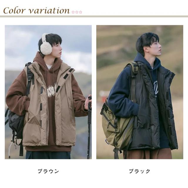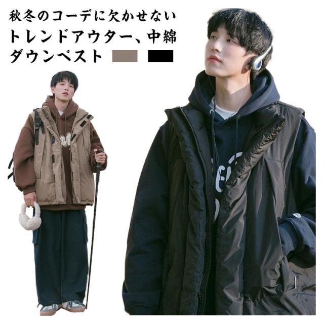ベスト ダウンベスト スタンドカラー 暖かい 中綿ジャケット 防風 ベスト ジャケット オーバーサイズ 大きいサイズ アウター メンズ 厚手 防寒 中綿ベスト 保温 秋冬 おしゃれ 冬服 韓国 羽織り 秋服 カジュアル M L XL 2XL 3XL