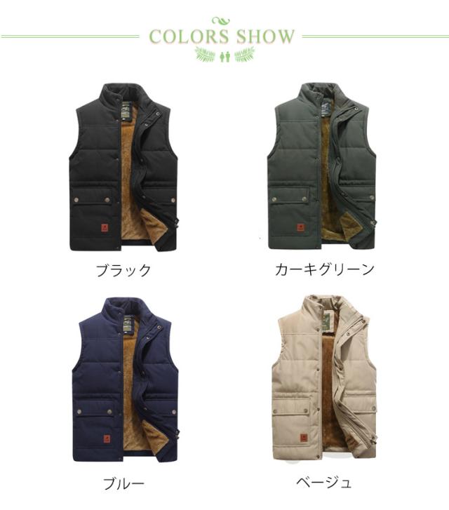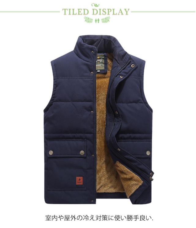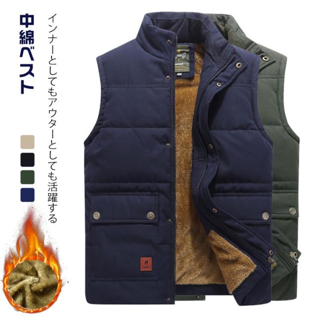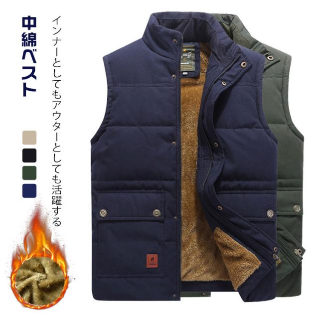 中綿ベスト メンズ 前開き 裏ボア 裏起毛 あったか 室内着 立ち襟 インナー 防寒着 トップス ジレ 保温 冬 厚手 防風 アウター 重ね着 ギフト プレゼント ギフト