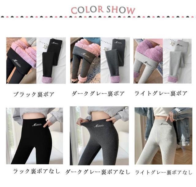 | ふわふわの極厚裏起毛素材のリブレギンス。 寒い冬のマストアイテムです毎日のコーデにお役立ち! ウエスト部分の英字刺繍はおしゃれなワンポイント。 まるで着る毛布のような肌触りが最高。 伸縮自在で、しっかり脚からお尻にFITするので、細身で繊細なスタイルを引き出してくれ、美脚、美尻を徹底的に実現しました。 ハイウエストだから脚長にスタイルアップ出来るのも嬉しいポイント! ストレッチも効いていて動きやすく、シンプルトップスを合わせて今年っぽいスタイルができちゃいます。 | |