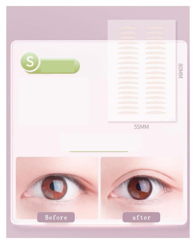 | サイズについての説明 | S 16*2mm;短くて細いタイプ:目の形の微調整に適しており、すでに二重まぶたで目の頭と尾が下がっている場合は、目の形を少し調整します。 M 24*2mm;細長いタイプ:ほとんどの目の形に適しています。 L 27*3mm;ロング&ワイドタイプ:重い一重まぶたの救世主!腫れたまぶた、厚いまぶた、二重まぶた、弱いまぶたに適しており、目を大きく大きくすることができます。 |