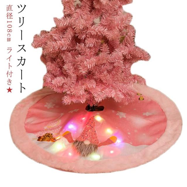 ピンク 足元カバー スカート サンタクロース ライト付き サンタ クリスマスツリー ツリースカート オーナメント 足元スカート 3D 円形 ラグ 北欧 足元隠し スカート ツリー 土台隠し クリスマス 直径108cm インテリア カーペット 装飾