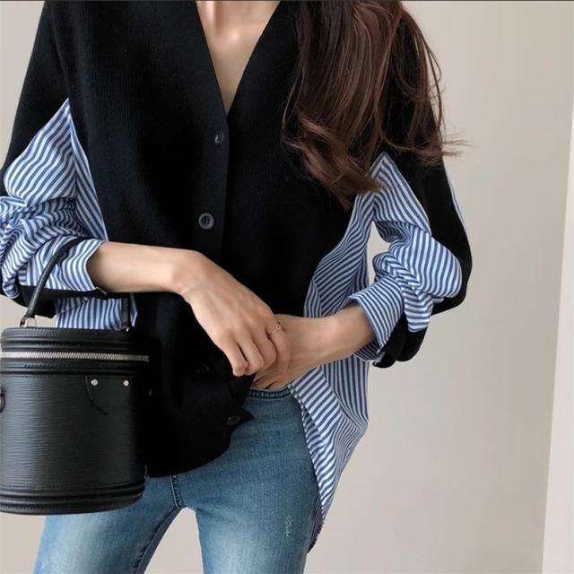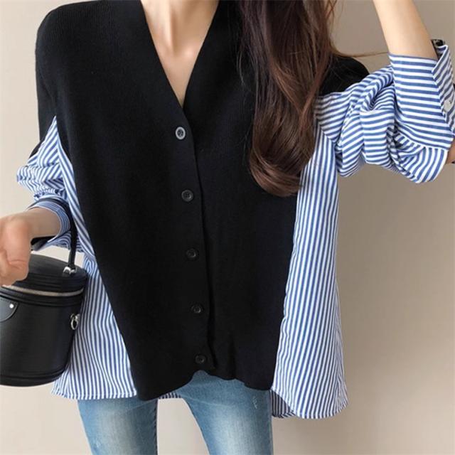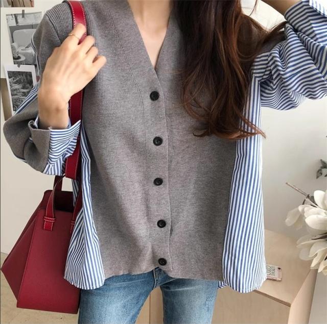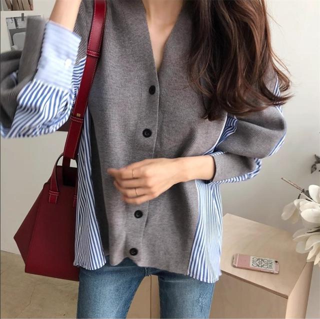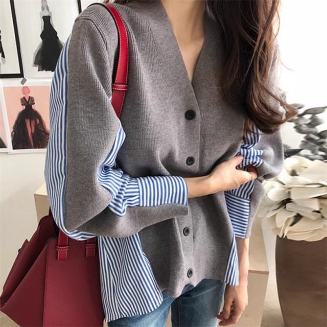 レディース 秋冬 トップス セーター 異素材 切り替え 長袖 カーディガン レディース Vネック きれいめ さっと羽織るだけでお洒落が叶うアイテム 大人気