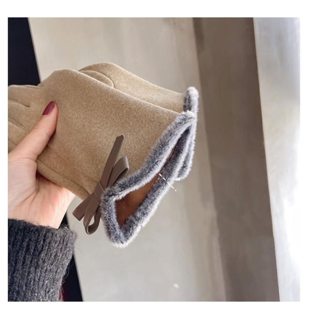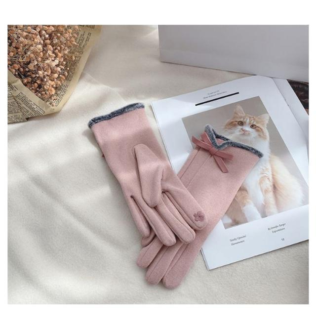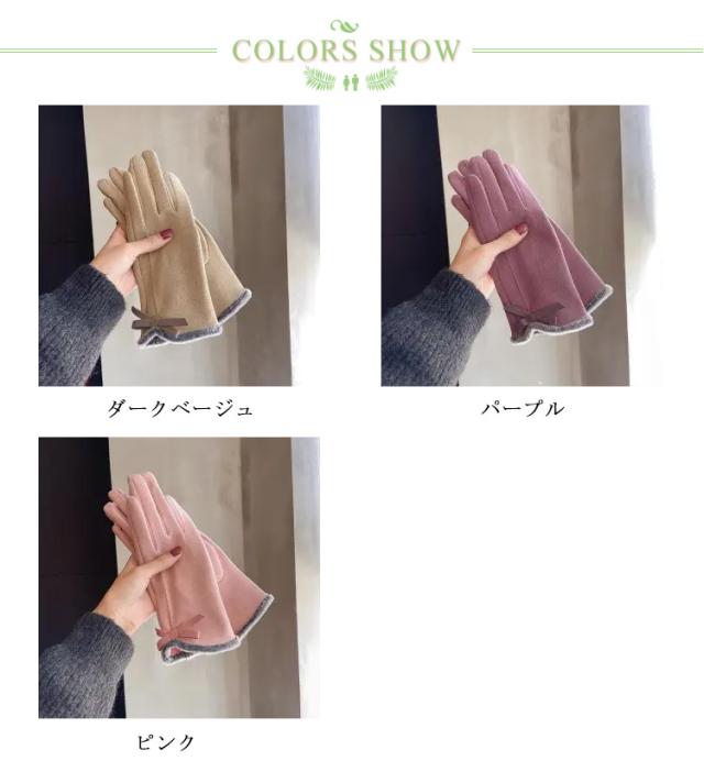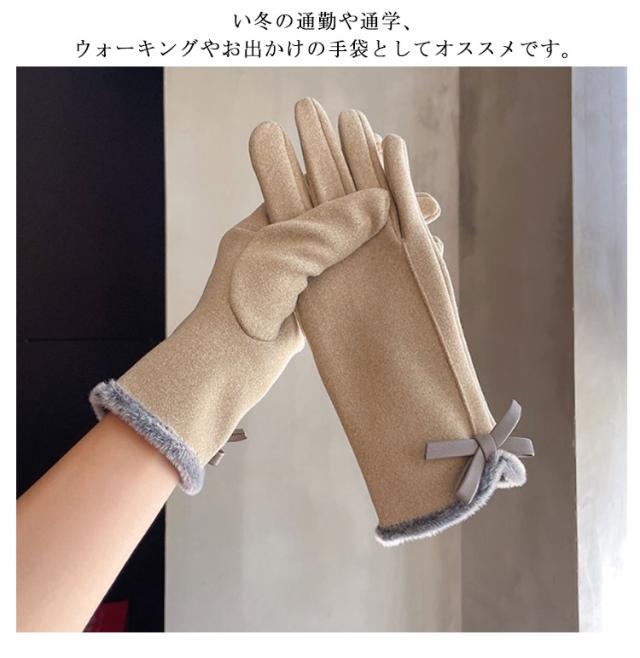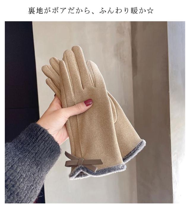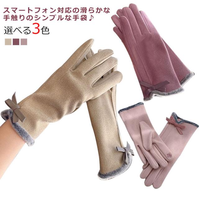 手袋 手袋 リボン 裏地ボア 手袋 あったか おしゃれ レディース シャムード 手袋 五本指 防寒 シンプル 冷え防止 冬 お出掛け
