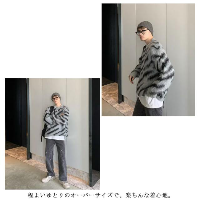 セーター シャギーニット ビッグシルエット シャギーニット 長袖 秋服 冬服 ニット トップス オーバーサイズ 大きなサイズ あったか ふんわり ドロップショルダー 男性 カジュアル 韓国