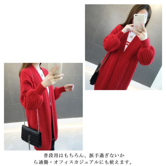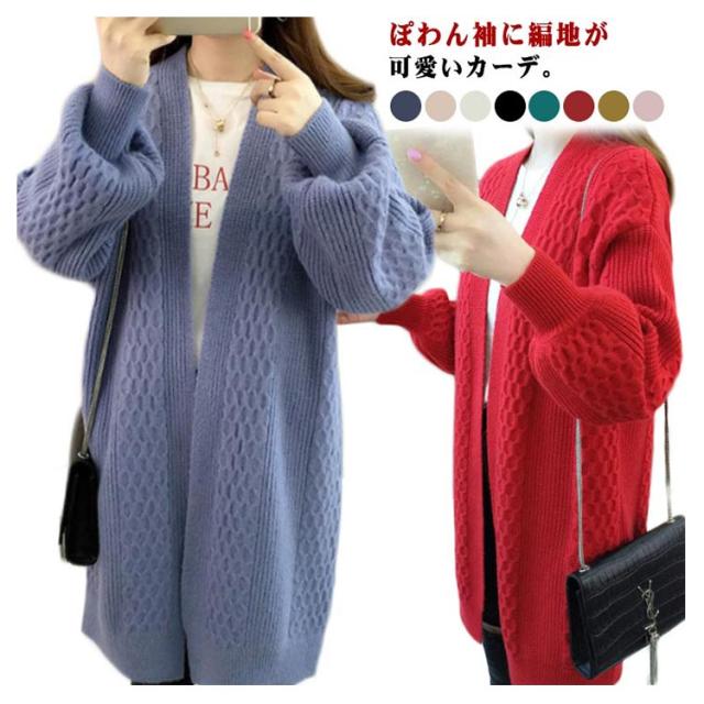 ロングカーディガン ローゲージニット レディース おしゃれ 長袖 パフ袖 体型カバー 防寒 女性 かわいい 秋 カーディガン レディース ロングニット カーデ カーディガン ジャケット トップス ロング丈 ニット 森ガール 長袖 羽織物 前開き 秋服 プチプラ