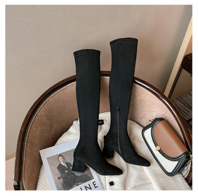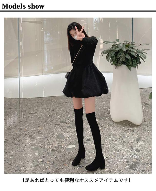 太ヒール 細見せ 美脚 ニーハイブーツ 秋 ストレッチ 冬 痛くない 疲れにくい 大きいサイズ 可愛い フィット ニーハイブーツ ゆったり スムース 送料無料 秋冬 小さいサイズ 22cm 22.5cm 23cm 23.5cm 24cm 24.5cm