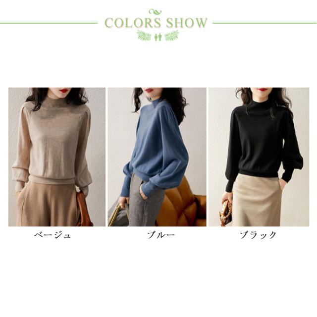 レディース ブラック チュニック セーター 長袖 あったかセーター 春 秋 無地 ハイネック レディースニットセーター ニット バルーンスリーブ ニット ニットトップス リブニット ドルマン べジュー キャメル グレー ニットソー 20代 30代