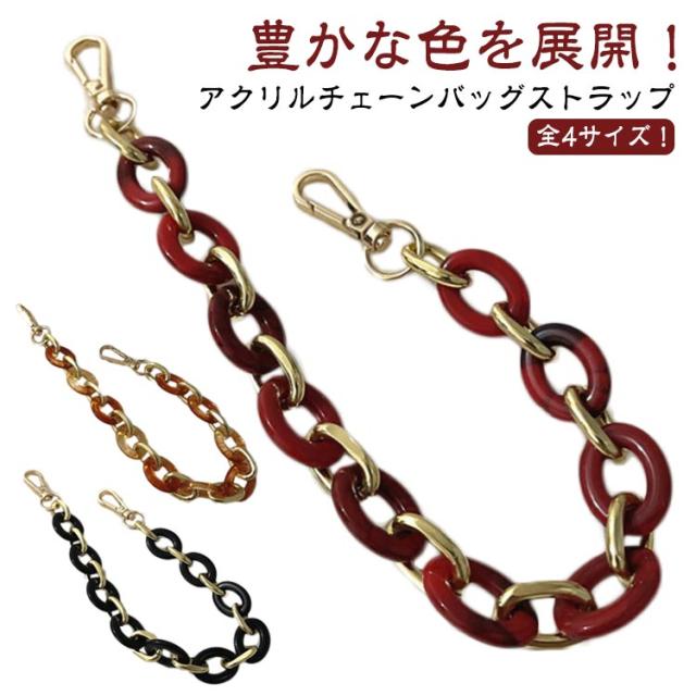 | 全4サイズ!アクリルチェーンバッグストラップ 豊かな色を展開! 手持ちのシンプルバッグに付け替えるとあっという間にお洒落に大変身! ハンドバッグや斜め掛けバッグ、肩掛けバッグなどにお使いいただけます。 その日の洋服や気分に合わせてお好みの色をチョイスできます。 選べる4サイズ、ニーズに合わせてお選びいただけるのもうれしい♪ | |