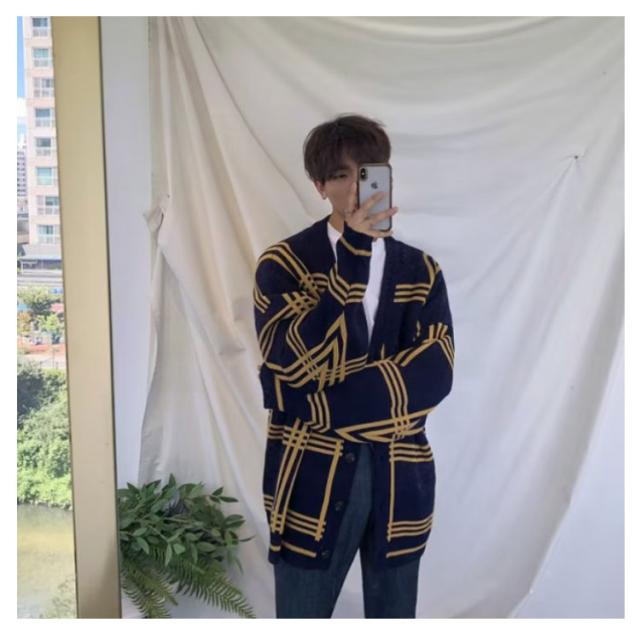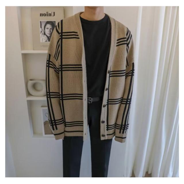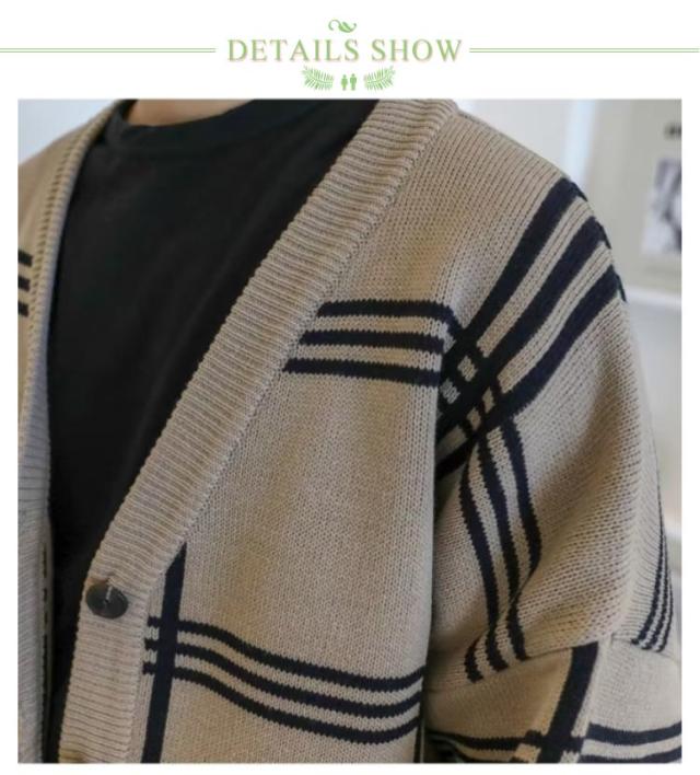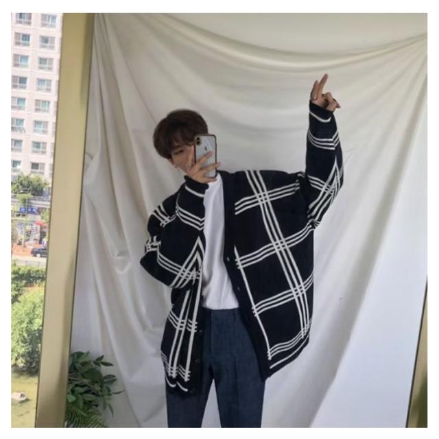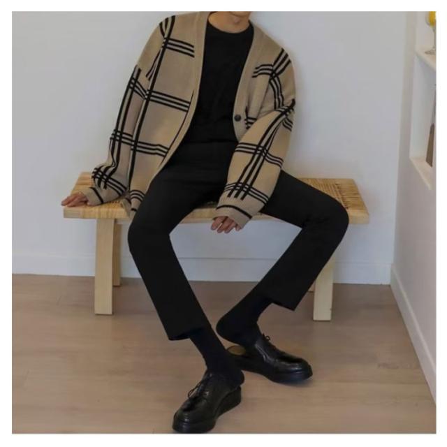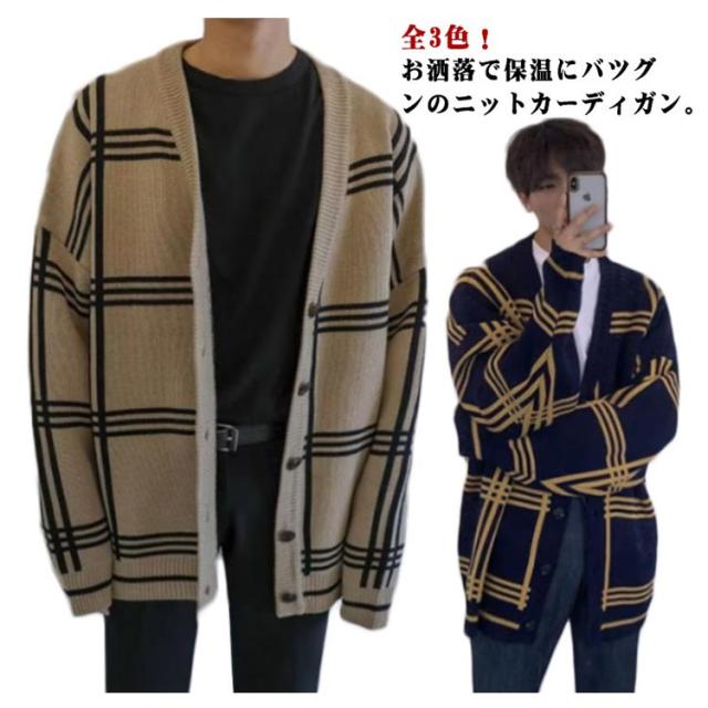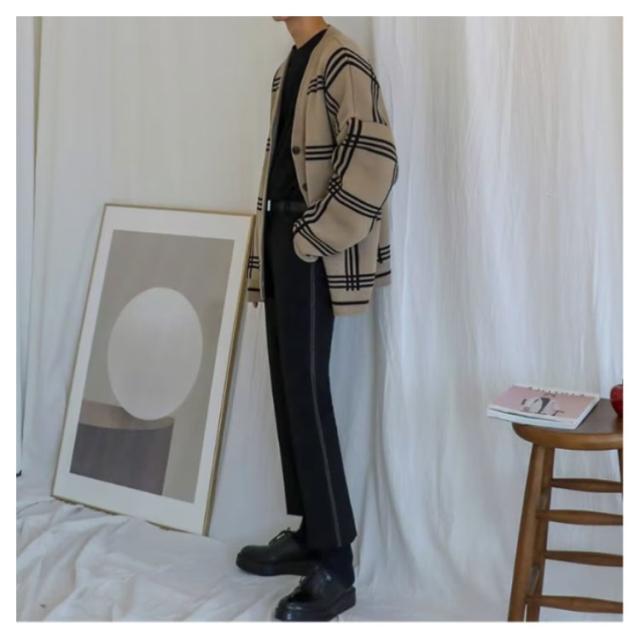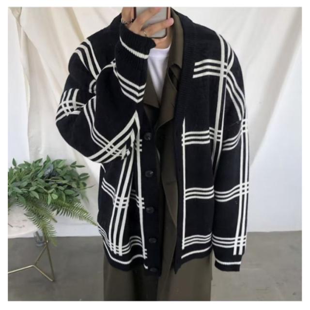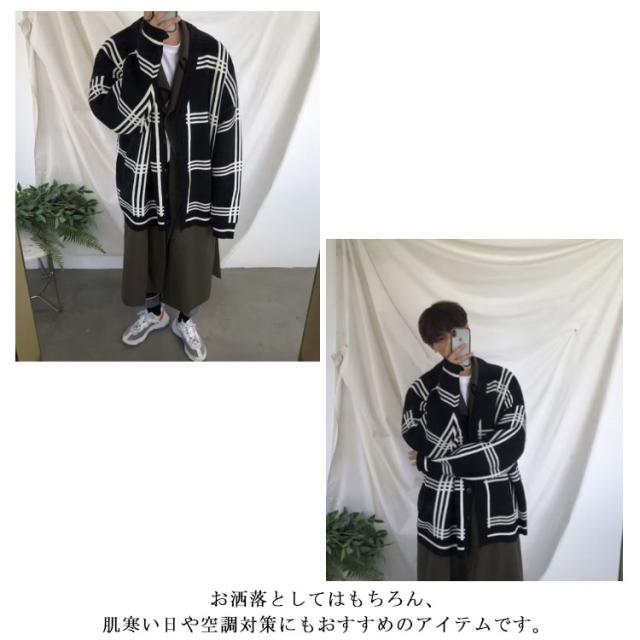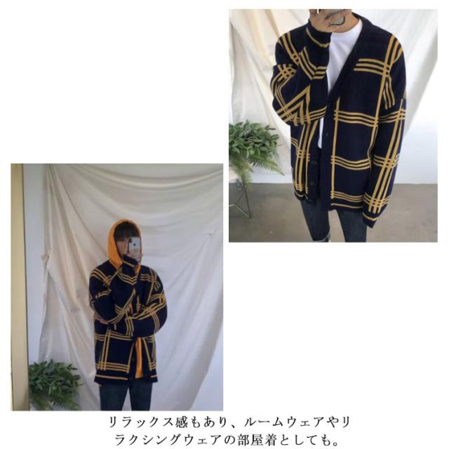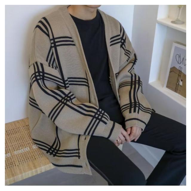 カーディガン カーディガン チェック柄 オーバーサイズ メンズ ボダン付き 秋服 ドロップショルダー カーディガン メンズ カーディガン メンズ ニットカーディガン メンズ 秋 春秋