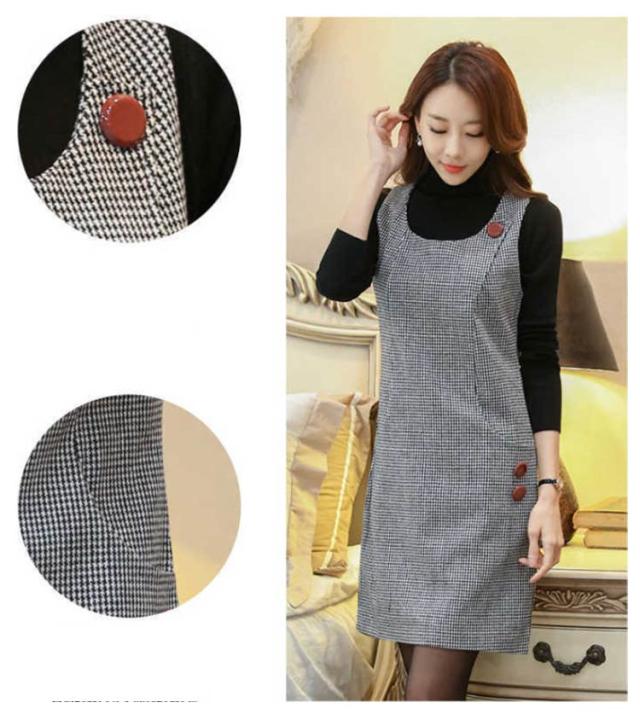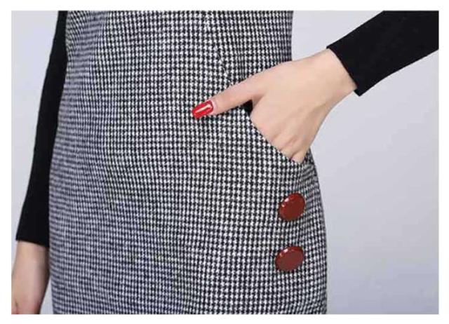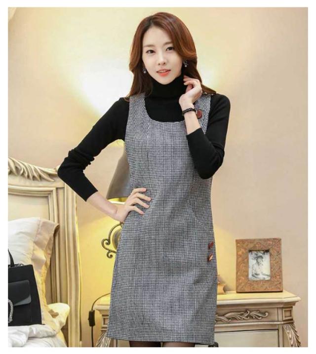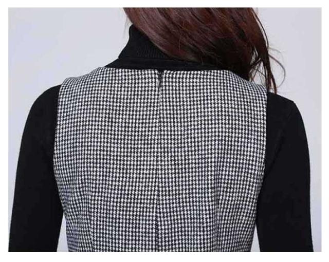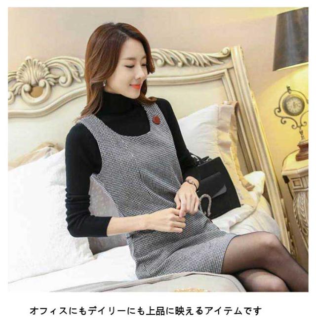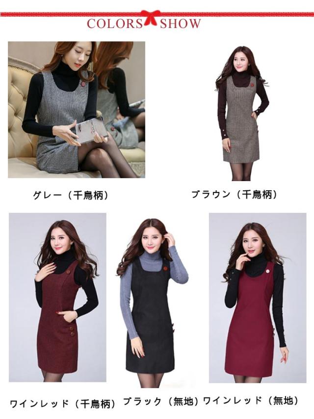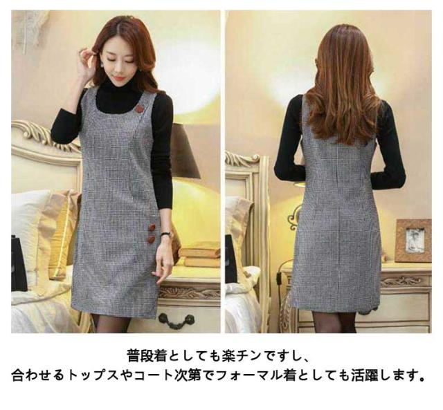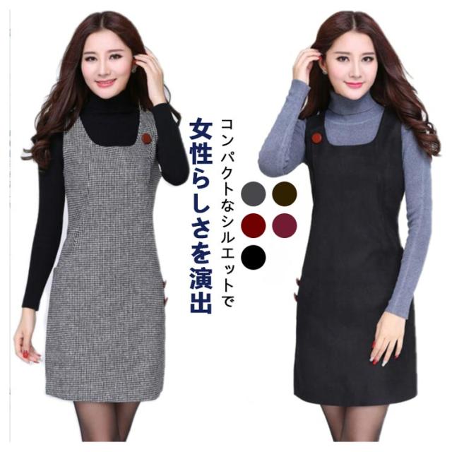 裏地付き ノースリーブ ショート丈 タイト 細身 ジャンパースカート ワンピース ジャンスカ ジャンパースカート 千鳥柄 OL オフィス 無地 50代 秋冬 30代 40代 フェミニン 膝上 きれいめ プルオーバー
