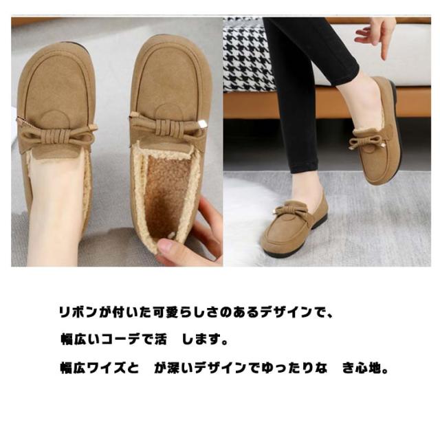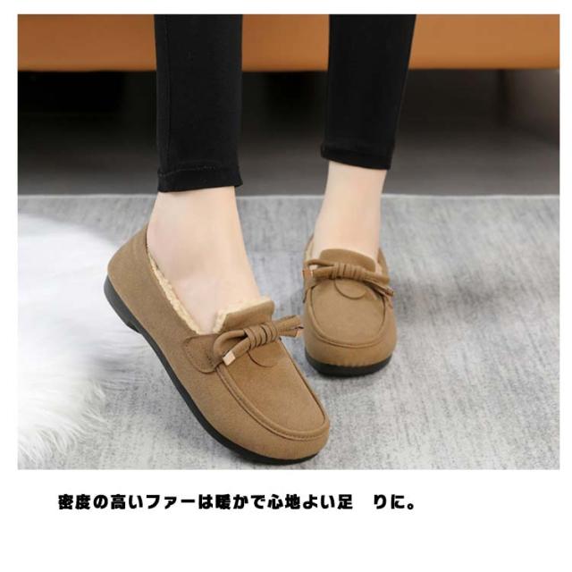 モカシン モカシンシューズ リボン レディース ローファー シューズ スエード調 ローファー フェイクファー 軽量 ボア もこもこ あったか ファーモカシンシューズ スリッポン モカシン おしゃれ ぺたんこ 内ボア 裹起毛 秋 冬