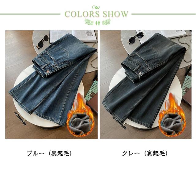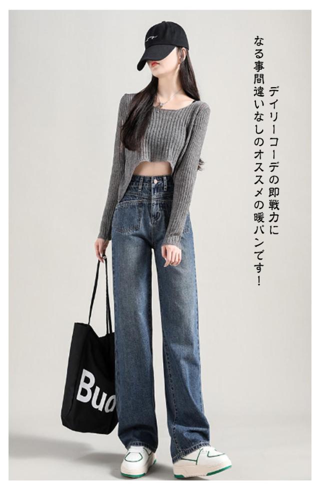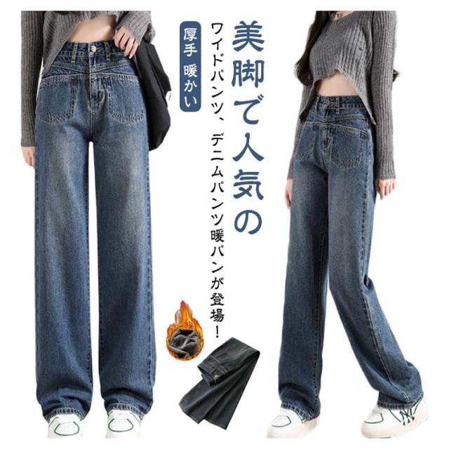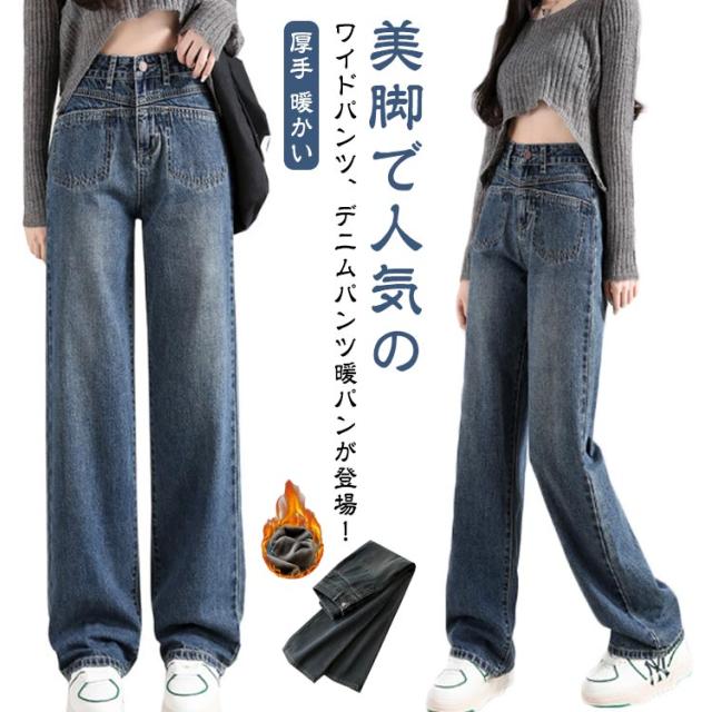 レディース デニムパンツ 裏起毛 レディース ワイドパンツ ワイド 大きいサイズ ジーンズ ジーパン 美脚 ボトム 体型カバー ボトムス 裏起毛 厚手 暖かい ストレート ズボン ゆったり ハイウエスト 太め ゆったり 防寒 秋冬