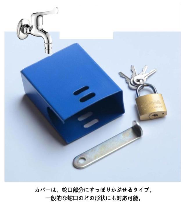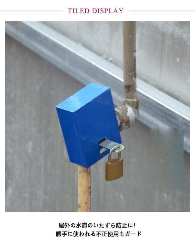 | 取り付け簡単!屋外水道のいたずらや不正使用を防ぐ蛇口ロックです。 屋外の水道のいたずら防止に!勝手に使われる不正使用もガード◎ 水道の蛇口部分にカバーをかぶせ、南京錠を取り付けてロックするだけ。 特別な工具は一切不要。誰でも無理なく取りつけて使用できます。南京錠にはスペアキー付き! カバーは、蛇口部分にすっぽりかぶせるタイプ。一般的な蛇口のどの形状にも対応可能。 ご自宅の庭の水道はもちろん、長期で家を空ける別荘や、公共施設、公園などの水道の不正利用も防ぎます。 | |