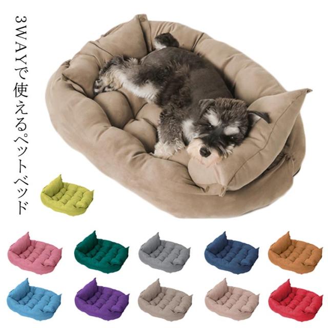 ペットベッド 犬 猫 3way ペット クッション 広げる ソファ マット ペット用品 あったかい 小型犬 ふわふわ 柔らかい 防寒 保温 寒さ対策 スエード調 中綿入り