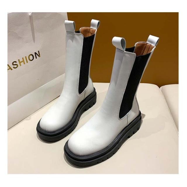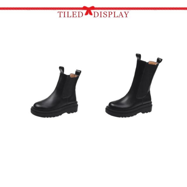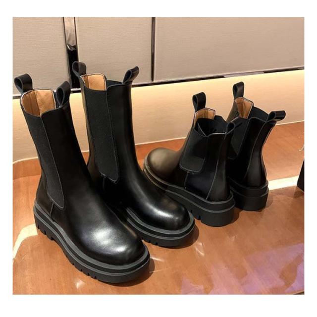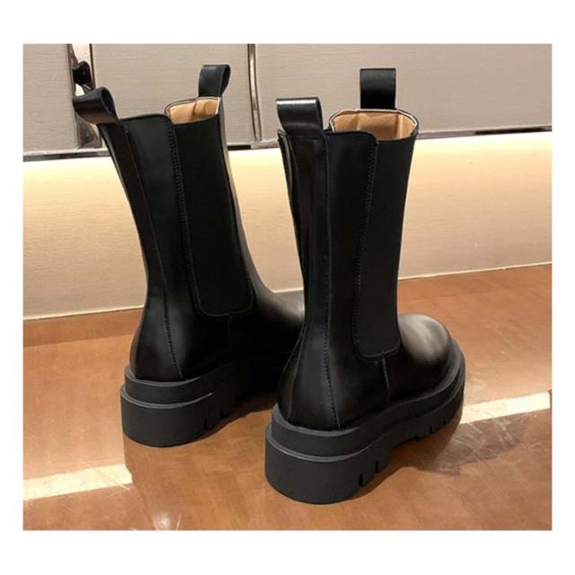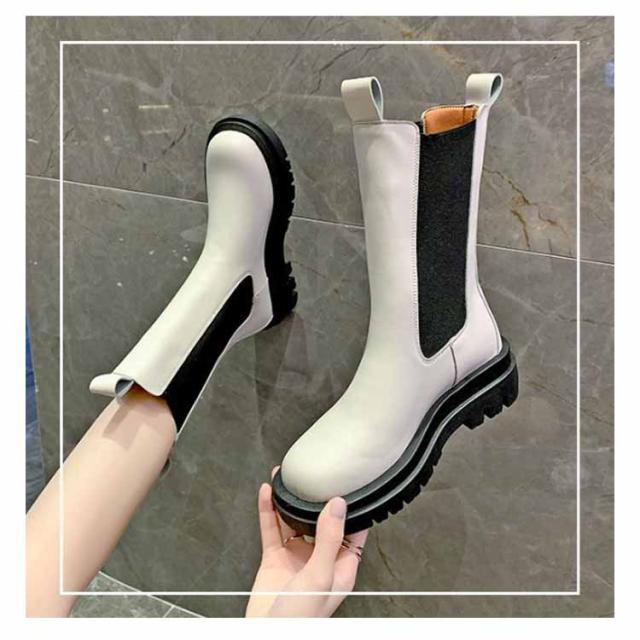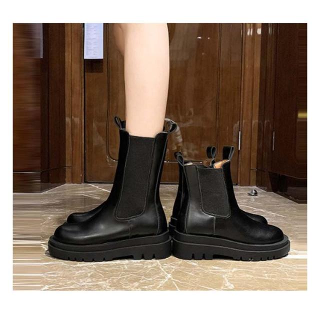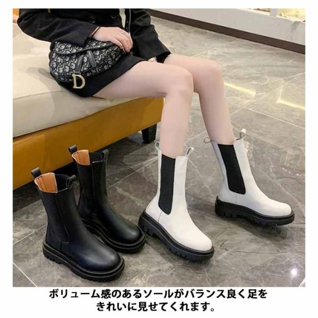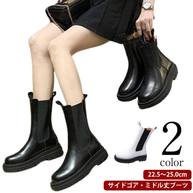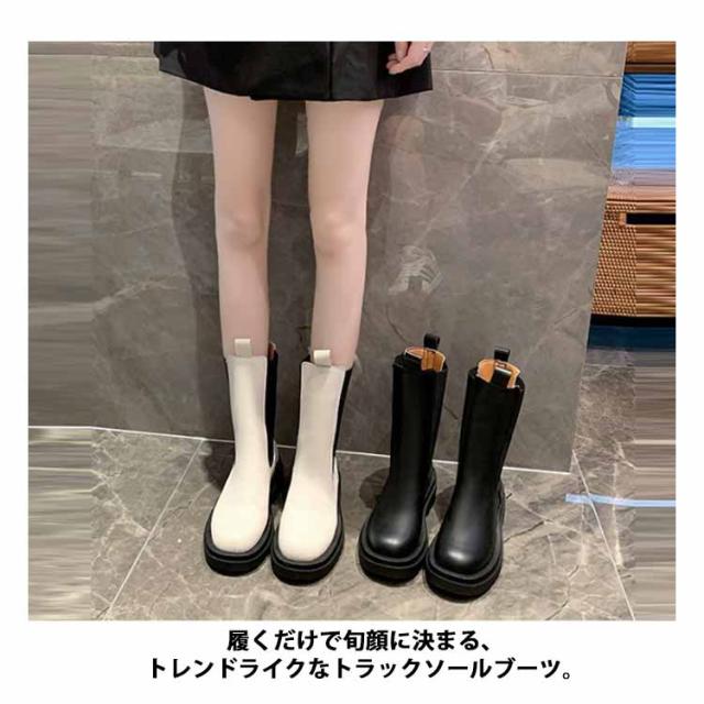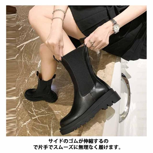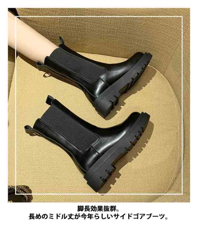 ショートブーツ ストレッチ サイドゴア 韓国ファッション 厚底 トラックソール 美脚 ブーツ 履きやすい チェルシーブーツ サイドゴアブーツ 靴 ミドル丈 ボリュームソール レディース サイドゴア おしゃれ 人気 かわいい 秋 冬