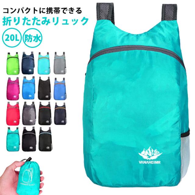 登山 サブバッグ ナップサック コンパクト 20L 防水 リュック 折りたたみ キャンプ バックパック アウトドア リュックサック 旅行 超軽量 ウォーキング 散歩 マイバック 男女兼用 買い物