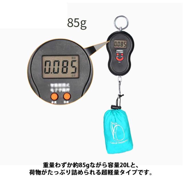 | ・コンパクトに携帯できる折りたたみリュック ・パッと広げてリュックとして使い、不要時はコンパクトにたためるのでサブバッグとして持ち運びに便利です。 ・重量わずか約85gながら容量20Lと、荷物がたっぷり詰められる超軽量タイプです。 ・軽量で持ち運びにも便利なので、旅行やキャンプ、ハイキング・ショッピングなど、さまざまなシーンで利用できます。 ・メッシュで蒸れにくいショルダーベルトを採用しています。 ・カラーバリエーションが豊富で、男女性問わず使えます。 | |