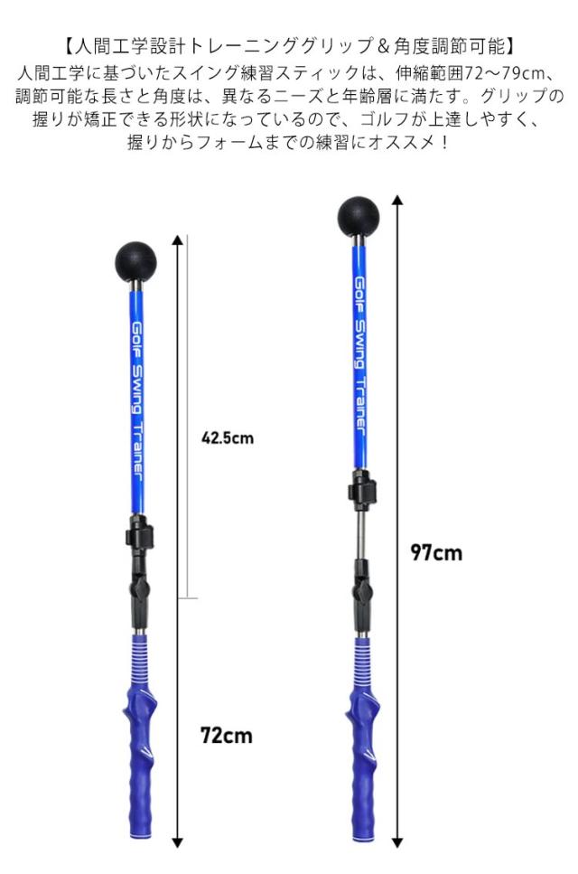 スイング ゴルフ練習器具 スイング練習スティック ゴルフ ゴルフスイングトレーナー 練習 ゴルフエイド ゴルフ練習器具 ゴルフ素振り スイング 姿勢補正 角度調節可能 72cm-79cm伸縮可能 折りたたみ可能 広角 初心者 男女兼用 右利き用 室内