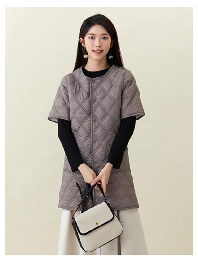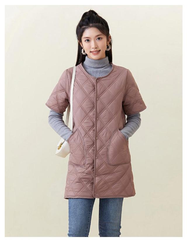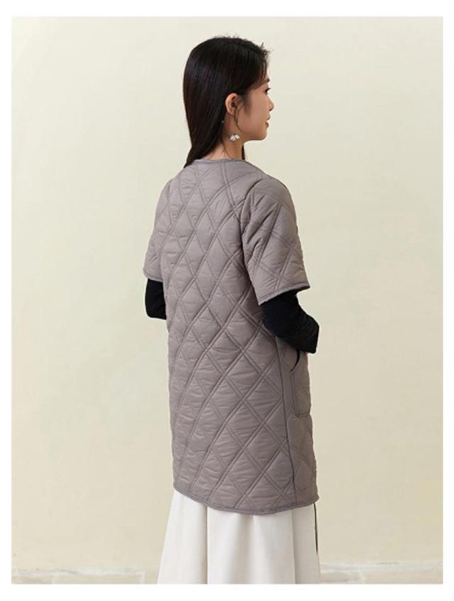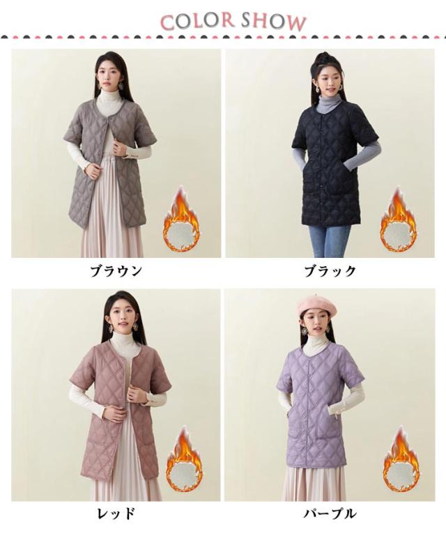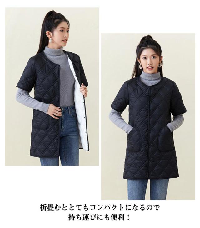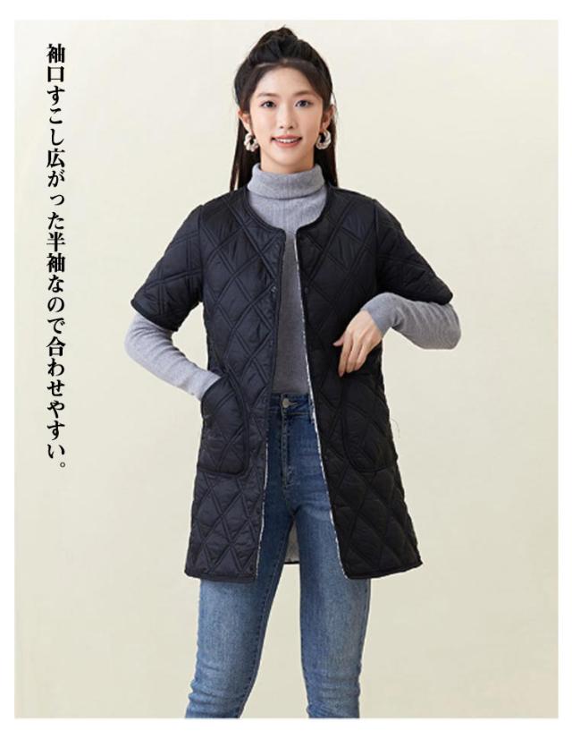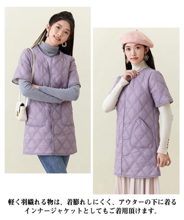 ロング ノーカラー キルティングコート ジャケット キルティングジャケット 半袖 50代 中綿 通勤 防寒 40代 ノーカラー 60代 大きサイズ