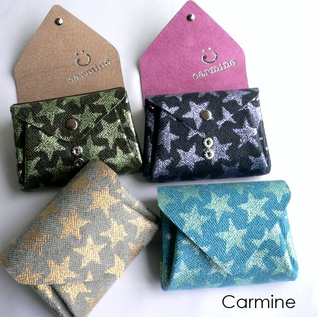 carmine カーマイン レザー ミニウォレット 星柄 スター 折り財布 MWSTR ゴールド/カーキ/ブルー/パープル