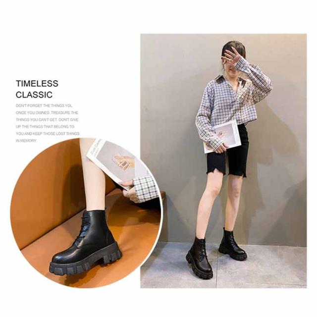 | 厚底レディースショートブーツ 【ゴムソール】しっかりとした合成ゴム底は型崩しにくいだけでなく、防滑性、クッション性も抜群。 柔くて曲がる靴底で快適な歩き心地です。 【ラウンドトゥ】つまさきの形が丸いから、指に優しい履き心地で、圧迫せずにのびのび動かせます。 【合わせやすい】ミニ丈のボトムス、パンツ・スカート・ワンピースと合わせるのはもちろん、今季はロング丈のスカートに合わせるスタイリングも新鮮。 | |
