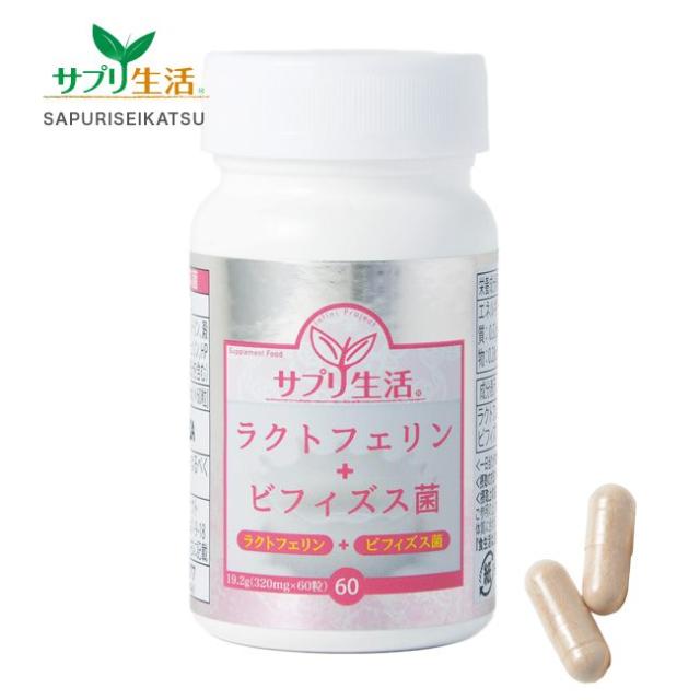 「サプリ生活 ラクトフェリン+ビフィズス菌 320mg×60粒」は、多機能たんぱく質ラクトフェリンと善玉菌のビフィズス菌を配合したサプリメントです。腸内フローラを整えて、体の内側から日々の健康をサポートします。