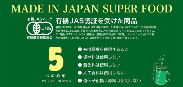 有機桑葉粉末(国産有機桑葉)、有機デキストリン、発酵生姜末