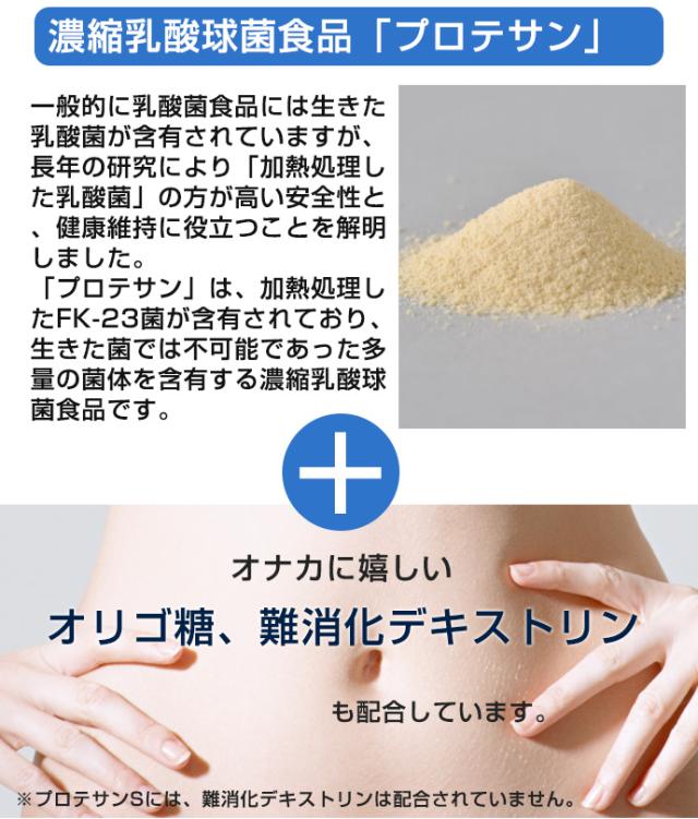 「プロテサン」は、生きた乳酸菌と異なる「菌体成分」の摂取を目的にしています。分包なので、常温で手軽に持ち運びできますので、いつでもどこでも手軽に多量の乳酸菌が摂取できます。 毎日の健康や美容にお役立てください。