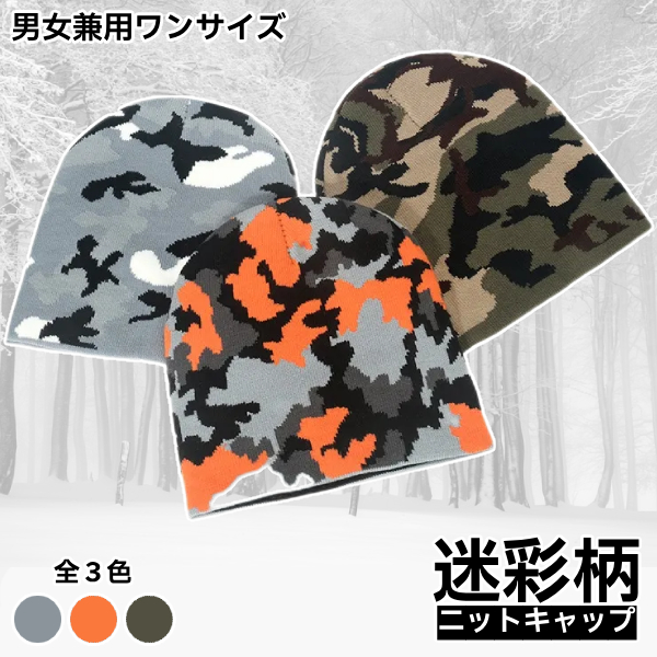 カモフラージュ 迷彩 ニット キャップ 防寒 ニット 帽子 あったかい アーミー ユニセックス カジュアル ファッション オレンジ グレー カーキ