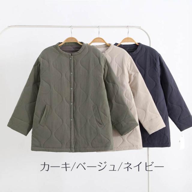 中綿キルティングコート レディース 中綿ジャケット キルティング アウター 無地 30代 40代 50代 カーキ ネイビー ベージュ dh243c0c0zr