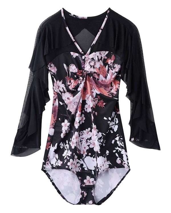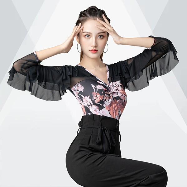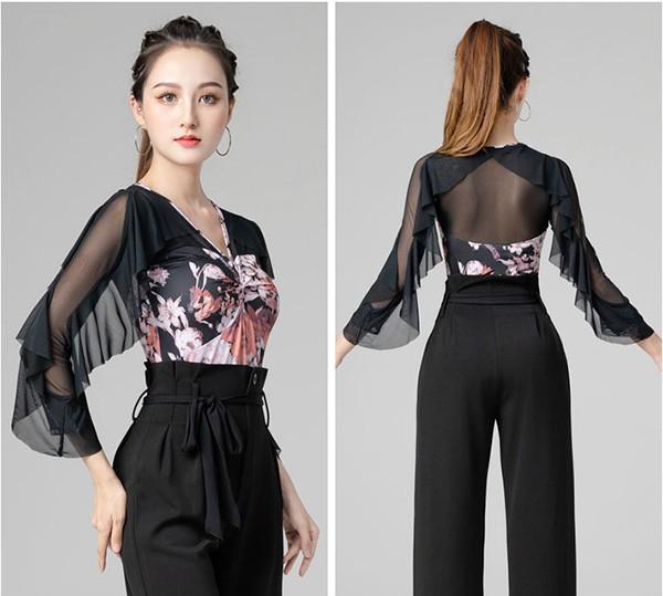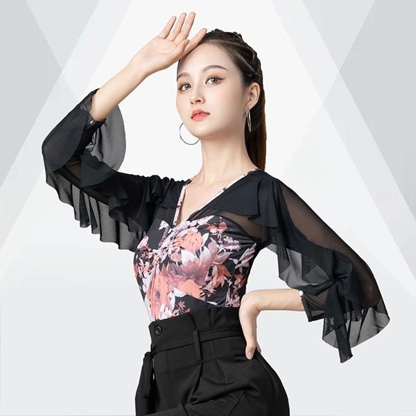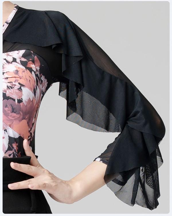 社交ダンス トップス 社交ダンス衣装 レオタード式 トップス 大きいサイズ 花柄 フリル ダンス用シャツ ダンスTシャツ 透け感 社交ダンス ラテンダンス ダンスウェア 練習着 長袖 カラオケ衣装 大きいサイズ レッスンウェアas044s1s1l9
