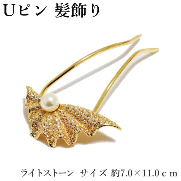 メール便送料無料 Uピン ライトストーン 髪飾り No.033 ゴールド(髪飾り パール ラインストーン 簪 かんざし ヘアピン 結婚式 入学式 卒業式 浴衣 和装)