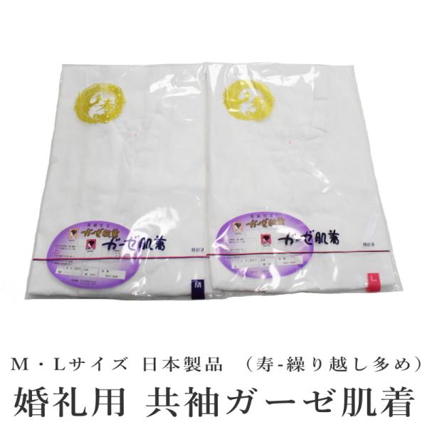 メール便送料無料 寿-ガーゼ肌着-(繰り越し多め)安心の日本製品(ML各/白色/共袖/細衿/普段向き 着物 下着 インナー)