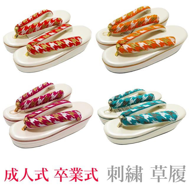 草履 成人式 甲高 ハイヒール刺繍 千鳥格子 こっぽり(フリーサイズ/台色:白台 鼻緒 赤 紫 水色 オレンジ 成人式 履きやすい /結婚式/卒業式/厚底)