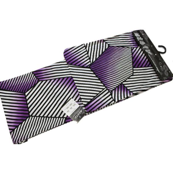 変わり織り個性派浴衣-No.306【地色:黒×白×紫色/仕立て上がり/フリーサイズ/綿100%/送料無料/国産しっかり生地/モダンレトロ】